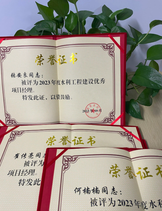 近日,河南省水利學(xué)會頒發(fā)了2023年度水利工程建設(shè)優(yōu)秀項目經(jīng)理的榮譽證書,我司多位同志榮獲此榮譽!